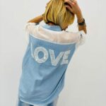 La chemise est un basique de notre dressing à avoir pour un look raffiné et bohème pour le printemps. On la retrouve ici boutonnées, manches longues, coupe droite, en jeans, en voile, écriture love au dos …