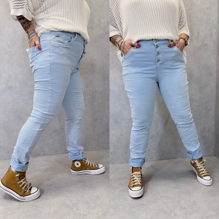 Le jean KAROSTAR couleur beige allie style et confort pour un look bohème affirmé et moderne. Sa coupe slim taille haute sublime vos courbes, tandis que le tissu stretch assure une aisance parfaite. Les poches arrière ajoutent une touche urbaine, tandis que les quatre boutons bijoux apportent un charme unique. Ce jean ajusté et sophistiqué devient vite un indispensable de votre garde-robe bohème chic !