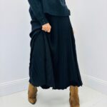 Longue et fluide, la jupe de la marque C’ VALENTYNE, est parfaite pour un look bohème. Coupe évasée, taille élastique dans un tissu viscose, ultra confort… intemporel pour la saison hivernale…