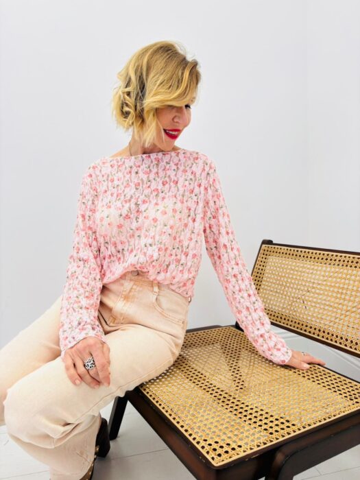 Tee-shirt col rond LIBERTY fleurie rose
